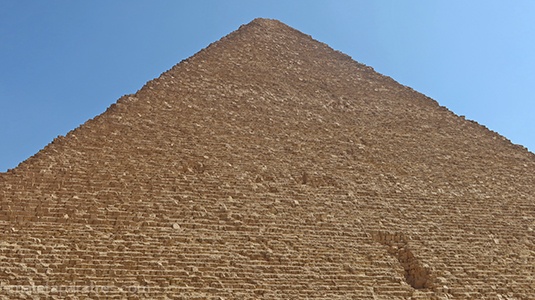 Totalmente desprovista de su revestimiento original durante la Edad Media, esta pirámide desnuda nos deja ver la inmensidad de cada uno de los bloques de piedra que la conforman, alimentando en cada visitante la curiosidad sobre su construcción, cuya respuesta hoy sigue siendo una incógnita.