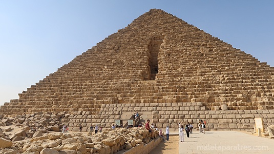 La pirámide de Micerinos parece pequeña junto a sus “hermanas”, pero, con una altura de 65,5 metros y 105 metros de ancho por lado, no es en absoluto una estructura menor. Si pensamos en un edificio moderno, equivaldría a una construcción de unas 20 plantas.