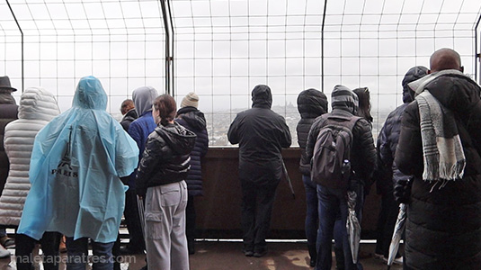 Fue cansado pero no imposible: son 674 escalones hasta la segunda planta. Lo peor fue que era invierno y nos tocó un día gris de lluvia y viento (muchísimo viento), que hizo la subida todavía más desafiante. Aun así, tiene su encanto: vas viendo la estructura por dentro, haciendo pausas cuando lo necesitas… y cuando llegas arriba (aunque nosotros nos encontramos con bastante niebla), las vistas de París siguen siendo el mejor premio por el esfuerzo.