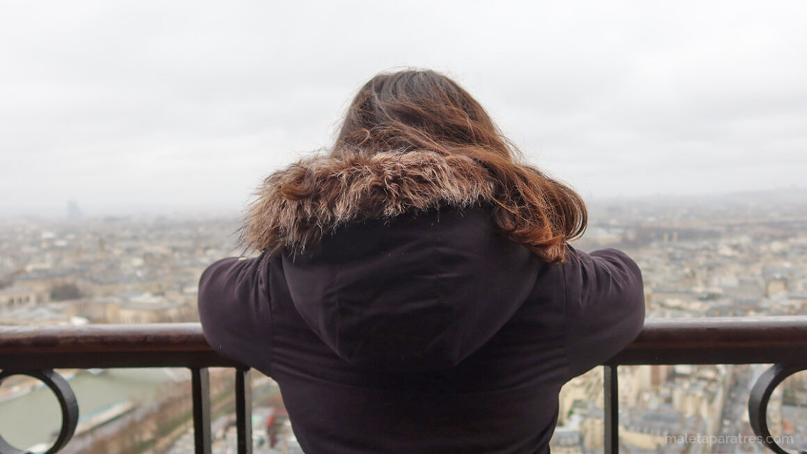 Fue cansado pero no imposible: son 674 escalones hasta la segunda planta. Lo peor fue que era invierno y nos tocó un día gris de lluvia y viento (muchísimo viento), que hizo la subida todavía más desafiante. Aun así, tiene su encanto: vas viendo la estructura por dentro, haciendo pausas cuando lo necesitas… y cuando llegas arriba (aunque nosotros nos encontramos con bastante niebla), las vistas de París siguen siendo el mejor premio por el esfuerzo.